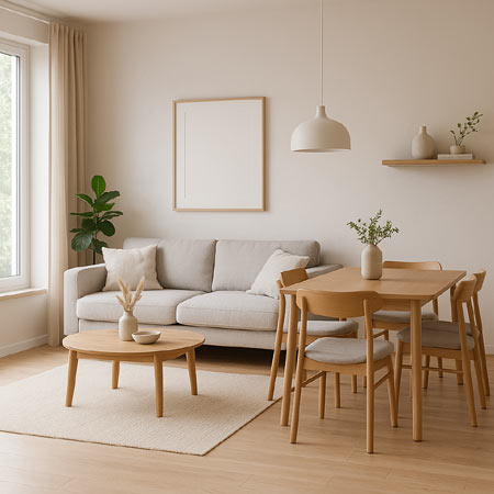 Skandinavisches Design steht für Schlichtheit, Naturverbundenheit und Licht. Ein Esstisch aus hellen Hölzern wie Eiche, Birke oder Esche schafft eine warme und harmonische Atmosphäre. Die Oberfläche darf ruhig lebendig wirken - kleine Unregelmäßigkeiten im Holz unterstreichen den authentischen Charakter.